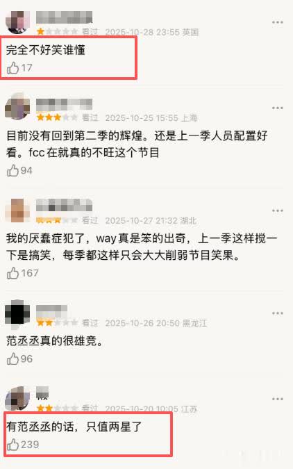 与此同时,“吃相难看、一点都不好笑、没有第二季辉煌”的字眼,也在它的评论区,出现了。